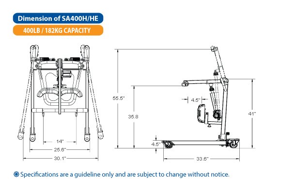 With it's 3-inch front casters the SA400H/HE provides smooth maneuverability and a low base height of 4.5 inches for clearance under beds.